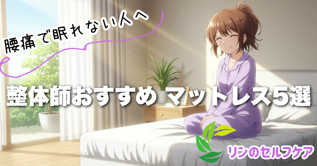 整体歴20年以上のK先生と、健康アシスタントのリンが選んだ、腰にやさしいマットレス5選をご紹介します。寝返りしやすく、体を面で支える設計のものばかり。腰の不調に悩む方はぜひチェックしてみてください。